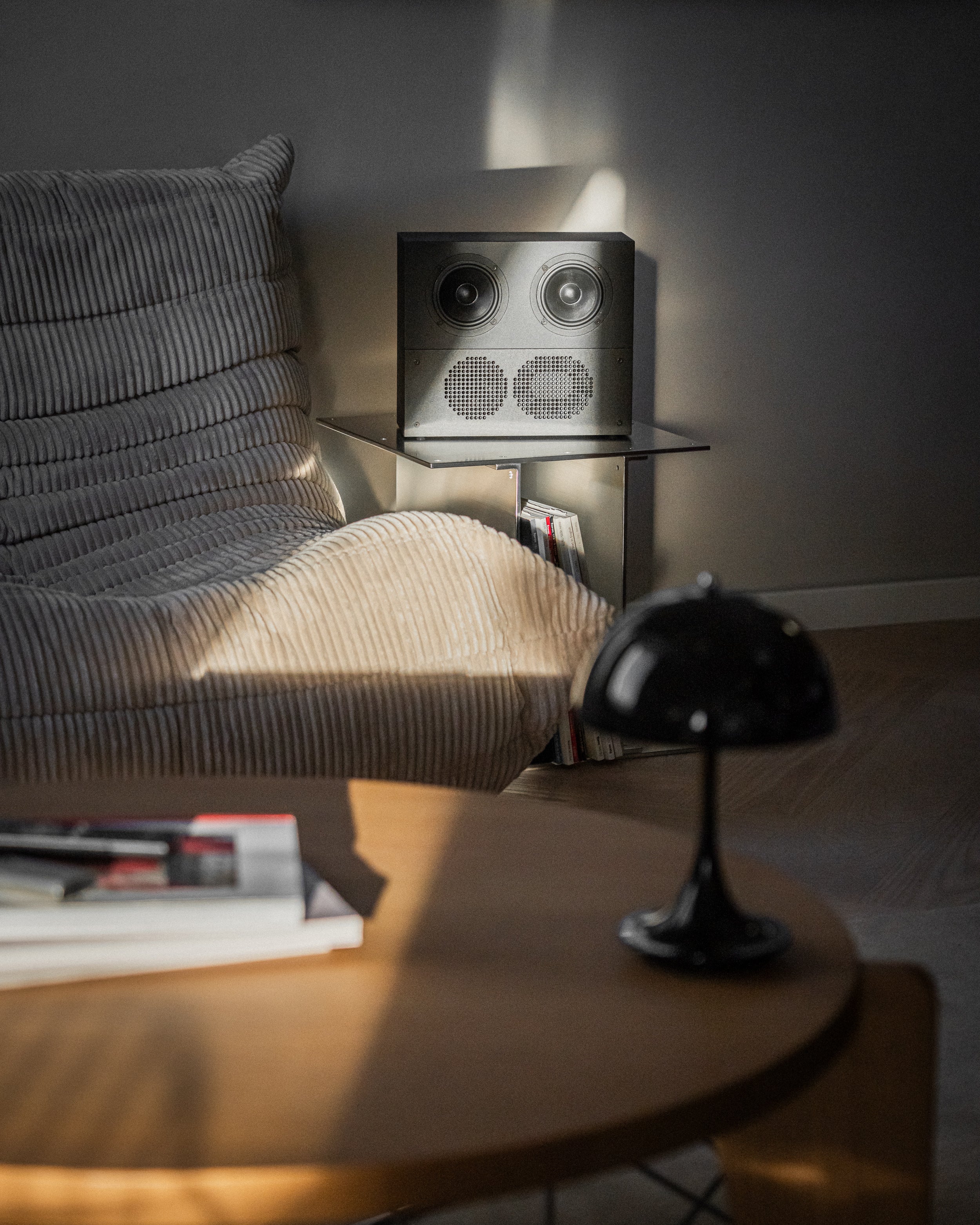 革新の精神に基づき、Mini に Scan Speak ドライバーが搭載されていることを嬉しく思います。今回は、これまでの常識を打ち破るカスタムチューニングのサブウーファーと組み合わせ、超コンパクトな筐体で豊かな低音レスポンスを実現しました。